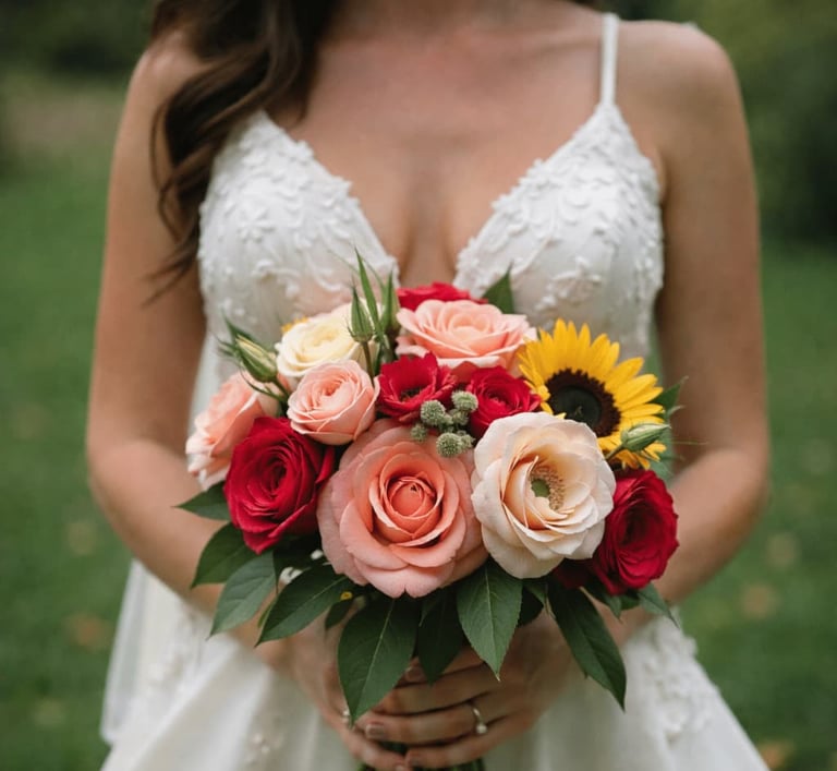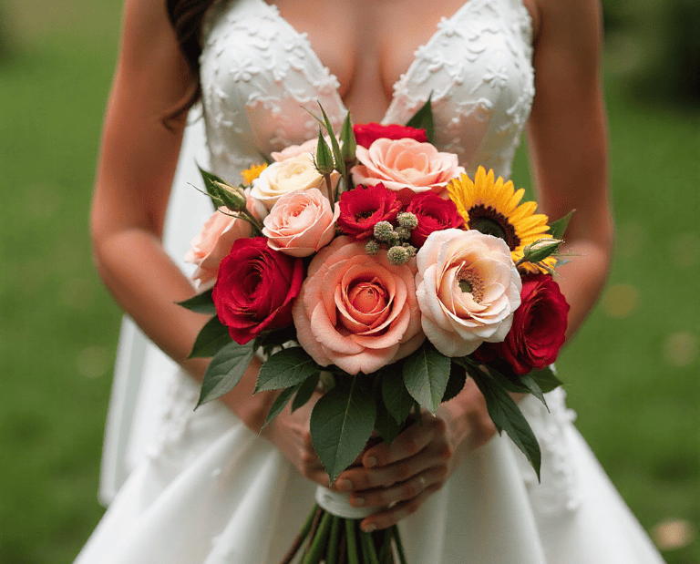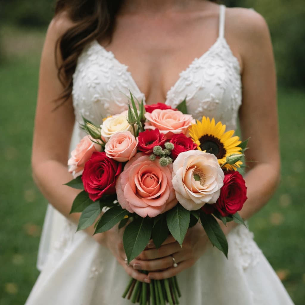 Ogni bouquet viene progettato partendo dai colori scelti per il matrimonio, dallo stile dell’abito e dal tema dell’evento. Le nostre soluzioni includono bouquet romantici con rose e peonie, composizioni moderne con fiori di campo, bouquet boho chic e creazioni più classiche e strutturate.