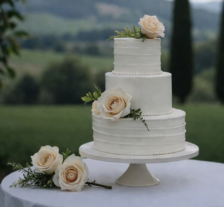For couples choosing our Marche villas for their wedding, we personally handle delivery, setup, and presentation of the cake, ensuring an impeccable display at the cutting ceremony.