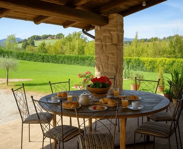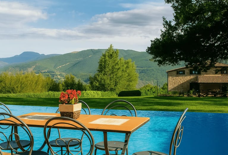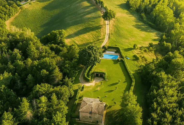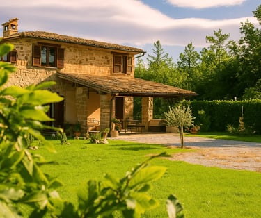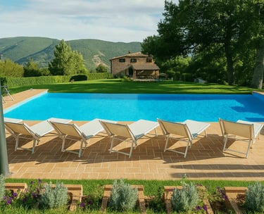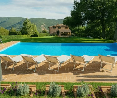 All’esterno vi attende la natura: un grande prato privato, viste panoramiche e l’aria fresca di campagna. La piscina privata e l’area solarium sono perfette per pomeriggi pigri al sole, un tuffo rinfrescante o un pisolino all’ombra delle querce secolari. Gustate un bicchiere di vino, osservate il tramonto illuminare le colline o ascoltate il coro degli uccelli mentre vi immergete in un autentico relax.