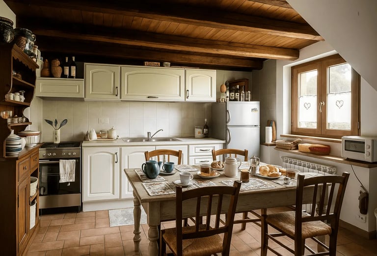 La cucina open space è completamente attrezzata per cucinare insieme, o per ospitare uno chef privato che prepari un pasto speciale per il vostro gruppo. Le aree living e pranzo calde e accoglienti invitano a lunghe conversazioni tra cibo, vino, storie e giochi, trasformando ogni pasto in un’esperienza condivisa.