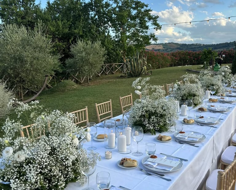 From bridal bouquets to centerpieces, from wedding arches to decorations for ceremonies, tables, and outdoor spaces, every detail is carefully designed to provide a memorable visual experience.