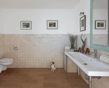 Al piano superiore ci sono tre camere da letto ampie e luminose e due bagni. Ogni stanza è arredata con uno stile unico, combinando fascino classico e tocchi moderni, e piena di luce naturale.
